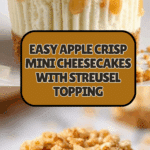 Apple Crisp Mini Cheesecakes combine creamy cheesecake with the warm flavors of spiced apples and a crunchy streusel topping. Perfectly portioned in mini form, these treats are ideal for parties or a cozy dessert at home.