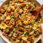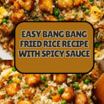 A flavorful and spicy twist on classic fried rice, Bang Bang Fried Rice combines tender chicken, scrambled eggs, and fresh vegetables stir-fried with a zesty bang bang sauce made from mayonnaise, sweet chili sauce, Sriracha, and rice vinegar. This quick and satisfying dish is perfect for a weeknight dinner and garnished with green onions for extra freshness.