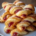 Berry Puff Twists are delightful, flaky pastries made with buttery puff pastry filled with sweet mixed berry preserves. These spiral-shaped twists are brushed with a vanilla-infused butter and egg wash, then sprinkled with sugar to create a golden, crispy, and caramelized finish. Perfect for breakfast, dessert, or a sweet snack.
