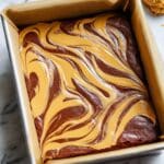 - Add Biscoff Swirl: Heat 1/3 cup of smooth Biscoff spread in the microwave for 5 to 10 seconds until softened. Spoon dollops on top of the brownie batter, then use a butter knife to swirl the spread artistically across the surface.