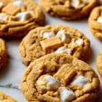These Biscoff Cookie Butter White Chocolate Chip Cookies combine the rich, spicy flavor of Biscoff cookies with creamy cookie butter and sweet white chocolate chips, creating soft, chewy cookies with a delightful crunch from chunks of Biscoff cookies pressed on top.