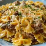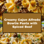 This Cajun Cream Cheese Alfredo Bowties with Spiced Ground Beef is a bold and creamy pasta dish that delivers rich flavors with a spicy kick. It combines tender bowtie pasta, savory ground beef, and a luscious Cajun-seasoned Alfredo sauce perfect for a satisfying weeknight dinner.