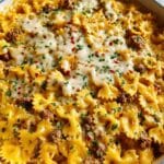 This Cajun Cream Cheese Alfredo Bowties with Spiced Ground Beef is a creamy, flavorful pasta dish combining tender bowtie pasta with a rich Cajun-spiced ground beef and a smooth cream cheese Alfredo sauce. Perfect for a comforting dinner with a spicy twist, it balances cheesy goodness with aromatic seasonings.