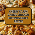 This Cheesy Cajun Garlic Chicken Rotini Skillet is a comforting, flavorful one-pan meal perfect for cozy nights. Tender chicken breasts are seasoned with bold Cajun spices, then cooked to golden perfection. Combined with al dente rotini pasta and a rich, creamy cheese sauce featuring mozzarella, Parmesan, and cheddar, this dish delivers a satisfying balance of spice and cheesy goodness. Fresh garlic and parsley add a fragrant touch to elevate every bite.