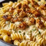 This Cheesy Cajun Garlic Chicken Rotini Skillet is a comforting, flavorful one-pan meal perfect for cozy nights. Tender chicken breasts are seasoned with bold Cajun spices, then cooked to golden perfection. Combined with al dente rotini pasta and a rich, creamy cheese sauce featuring mozzarella, Parmesan, and cheddar, this dish delivers a satisfying balance of spice and cheesy goodness. Fresh garlic and parsley add a fragrant touch to elevate every bite.