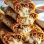 Cheesy Taco Sticks are a delicious and easy-to-make snack that combine seasoned ground beef, melted cheddar and mozzarella cheeses, all wrapped in crispy baked pizza dough twists. Perfect for parties, game days, or a quick family treat, these cheesy and savory sticks come with salsa and sour cream for dipping.