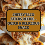 Cheesy Taco Sticks are a fun and flavorful twist on classic tacos, wrapped in warm, golden pizza dough. This easy-to-make snack or appetizer is perfect for sharing and pairs perfectly with salsa and sour cream for dipping.