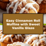 These Cinnamon Roll Muffins combine the classic flavors of cinnamon rolls with the convenience of a muffin. Soft, tender, and swirled with a sweet cinnamon sugar filling, topped with a smooth vanilla glaze, they make a perfect breakfast treat, dessert, or snack. Easy to make and bake, these muffins offer gooey, melt-in-your-mouth goodness in every bite.