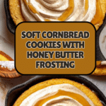 Enjoy a delightful twist on classic cookies with these cornbread cookies topped with honey butter frosting. The combination of cornmeal’s gentle texture and a luscious honey buttercream makes for an irresistible treat perfect for any occasion.
