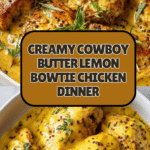 This Cowboy Butter Lemon Bowtie Chicken with Broccoli is a flavorful and hearty one-pan dish combining tender, Cajun-spiced chicken with al dente bowtie pasta and vibrant broccoli florets, all tossed in a creamy lemon butter sauce enriched with Parmesan and fresh herbs. Perfect for a quick weeknight dinner, this recipe delivers a satisfying balance of zest, spice, and richness in every bite.