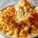 A warm and comforting creamy mac and cheese recipe featuring a blend of sharp cheddar, mozzarella, and parmesan cheeses, topped with a buttery breadcrumb crust for added texture and flavor. Perfectly baked to golden bubbly perfection, this classic dish is ideal for cozy dinners and family meals.
