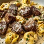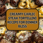 Keywords: Steak tortellini recipe, garlic cream sauce, easy pasta dish, creamy steak pasta, seared steak dinner, parmesan cream sauce
