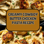 Creamy Cowboy Butter Chicken Pasta is a comforting and flavorful dish that combines tender chicken breasts with a rich, garlicky cream sauce. This recipe is perfect for a satisfying weeknight dinner that’s easy to make and sure to please the whole family.