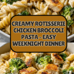 Rotisserie Chicken Broccoli Pasta is a creamy, comforting weeknight meal that comes together quickly using store-bought rotisserie chicken. The combination of tender pasta, fresh broccoli, and a rich cheese sauce makes this dish both satisfying and flavorful. It’s perfect for busy evenings when you want something delicious without the fuss.