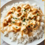 This Creamy Smothered Chicken and Rice recipe features tender chicken thighs or breasts cooked in a rich, flavorful mushroom and cream sauce. Enhanced with aromatic herbs and served over fluffy white rice, this comforting dish is perfect for a hearty weeknight dinner.