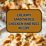This Creamy Smothered Chicken and Rice is a comforting, flavorful dish perfect for weeknight dinners. Tender chicken thighs simmered in a rich, creamy mushroom sauce served over fluffy white rice make this dish a family favorite. It’s simple to prepare yet impressively delicious.
