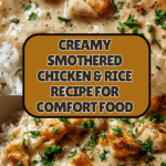 Creamy Smothered Chicken & Rice is a comforting and flavorful dish perfect for weeknight dinners. Juicy chicken thighs simmered in a rich, creamy sauce create a meal that’s both satisfying and easy to prepare. This recipe blends simple ingredients with a touch of elegance to nourish your body and mood.