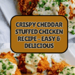 Crispy Cheddar Chicken is a deliciously golden and crunchy stuffed chicken dish featuring boneless, skinless chicken breasts filled with sharp cheddar cheese, coated in a seasoned Ritz cracker crumb crust, and finished with a perfect combination of pan-searing and oven baking for a juicy, flavorful result.