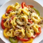 This Crock Pot Cheesesteak Tortellini recipe combines tender, slow-cooked beef with flavorful peppers, onions, and mushrooms, all simmered in a rich, creamy cheese sauce. The addition of tender cheese tortellini makes this meal comforting, hearty, and perfect for an easy weeknight dinner.