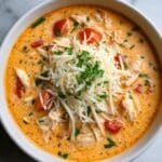 A comforting and hearty Crock Pot Creamy Chicken Parmesan Soup featuring tender shredded chicken, rich Parmesan cheese, and a creamy tomato broth infused with Italian seasoning. Perfect for slow-cooker enthusiasts seeking a warm, flavorful soup made with minimal effort.