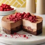 Keywords: dark chocolate mousse cake, raspberry mousse cake, chocolate raspberry dessert, layered mousse cake, chocolate ganache cake