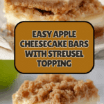 These Easy Apple Cheesecake Bars combine a buttery crust, creamy cheesecake filling, a sweet cinnamon apple layer, and a crumbly streusel topping for a delightful dessert. Perfect for fall or anytime you crave a comforting, fruity treat, these bars bake to golden perfection and are chilled for a firm, sliceable texture.