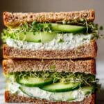 These Easy Cucumber Salad Sandwiches combine crisp, refreshing cucumbers with a creamy, tangy Greek yogurt and feta mixture. Featuring fresh herbs, lemon zest, and crunchy alfalfa sprouts on whole-grain bread, this sandwich is a light, healthy, and flavorful vegetarian option perfect for a refreshing lunch or snack.