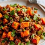 Keywords: ground beef hash, sweet potato hash, one pan meal, easy dinner, skillet hash, savory breakfast