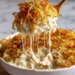 This French Onion Chicken Rice Casserole is a comforting and satisfying dish combining tender shredded chicken and cooked white rice with creamy soups and sour cream. Enhanced with garlic and onion powder, it’s topped with melted mozzarella or Swiss cheese and a crispy layer of golden French fried onions. Baked until bubbly and golden, then garnished with fresh parsley, this casserole offers a rich blend of savory flavors and textures perfect for easy weeknight dinners or family gatherings.
