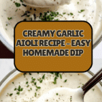 This creamy Garlic Aioli is a simple and flavorful sauce made from mayonnaise, fresh garlic, lemon juice, and a blend of seasonings. Perfect as a dip, spread, or accompaniment to sandwiches, seafood, and grilled dishes, this recipe is easy to make and brings a zesty, garlicky punch to any meal.