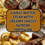 Keywords: Garlic Butter Steak, Cheesy Alfredo Tortellini, Ribeye Steak, Sirloin Steak, Creamy Pasta, Parmesan Sauce, Easy Dinner Recipe