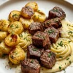This Garlic Butter Steak with Cheesy Alfredo Tortellini is a comforting and elegant meal perfect for any night of the week. Juicy, seared steak pairs beautifully with rich, creamy pasta for a satisfying and flavorful dinner.