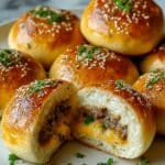 These Garlic Parmesan Cheeseburger Bombs are a savory and cheesy appetizer featuring seasoned ground beef and melted cheddar cheese wrapped in soft biscuit dough, brushed with garlic butter, and baked to golden perfection. Ideal for parties or a fun dinner treat, these bites combine the flavors of a cheeseburger with the convenience of an easy-to-eat snack.