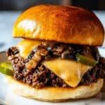 Gordon Ramsay’s Philly Cheesesteak Sloppy Joes (Ava-Style) are a delicious twist on the classic sloppy joe sandwich, featuring a savory blend of lean ground beef, sautéed onions, bell peppers, and mushrooms, simmered in a rich beef broth and ketchup sauce, then topped with melted provolone cheese and served on toasted brioche buns. This hearty and flavorful sandwich is perfect for a satisfying meal.