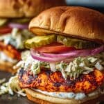 - Serve: Serve immediately while warm and enjoy the balanced flavors of smoky, spicy chicken paired with fresh, tangy slaw in a soft brioche bun.