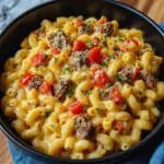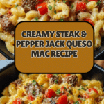 Heavenly Steak & Pepper Jack Queso Mac is a comforting and indulgent mac and cheese recipe featuring tender diced steak, creamy pepper jack cheese sauce, and sautéed bell peppers and onions. Perfect for cozy nights, this dish combines bold flavors and melty cheese for a satisfying meal that’s easy to prepare and sure to please.