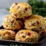 - Add cheese topping: Sprinkle the reserved ½ cup of cheddar cheese evenly on top of each biscuit to create a golden, flavorful crust as they bake.