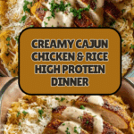 This High Protein Creamy Cajun Chicken & Rice dish is a flavorful and satisfying meal perfect for weeknight dinners. The tender chicken is marinated and cooked to perfection, paired with a creamy, spicy rice that brings rich Cajun flavors to your plate.