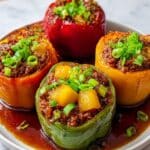 - Garnish and Serve: Garnish the stuffed peppers with sliced green onions if desired. Serve warm and enjoy your flavorful meal.