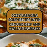 This comforting Lasagna Soup combines all the classic flavors of traditional lasagna in a warm, hearty bowl. Featuring ground beef, Italian sausage, tender pasta, and a rich tomato broth enhanced with fresh herbs, creamy ricotta, and melted mozzarella, this soup is a delightful twist on a favorite Italian dish that’s easy to make and perfect for any day.