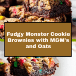 These Monster Cookie Fudgy Brownies combine the best of both worlds: rich, fudgy chocolate brownies topped with a delicious monster cookie dough crust featuring oats, mini M&M’s, and chocolate chips. The brownies boast a deep cocoa flavor with a tender, moist crumb while the cookie layer adds a delightful chewy texture and burst of sweetness, making it the ultimate treat for chocolate and cookie lovers alike.