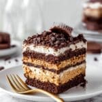 This no bake chocolate peanut butter cake is a luscious, creamy dessert perfect for peanut butter lovers. It combines layers of graham crackers, peanut butter mousse, whipped cream, and rich fudge for an irresistible treat. Easy to assemble and chilling to perfection, it’s a great cake to prepare ahead of time.