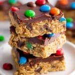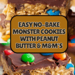 Delicious and easy No-Bake Monster Cookies packed with peanut butter, oats, chocolate chips, and colorful M&M’s. These bars are quick to prepare, combining creamy textures with crunchy candies, making them a perfect treat that requires no baking and sets in the refrigerator.