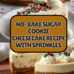 This No-Bake Sugar Cookie Cheesecake is a creamy, festive dessert that’s perfect when you want a sweet treat without turning on the oven. With a buttery sugar cookie crust and a luscious cream cheese filling topped with white chocolate and sprinkles, it’s sure to delight any crowd.