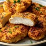 This Parmesan Crusted Chicken recipe features tender, pounded chicken cutlets coated in a flavorful mixture of panko breadcrumbs, Parmesan cheese, and herbs, then pan-fried to golden perfection. The crispy crust pairs beautifully with the juicy chicken inside, making it a perfect weeknight dinner or special meal that’s quick to prepare and deliciously satisfying.
