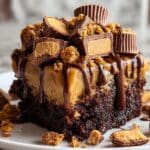 This Peanut Butter Cup Dump Cake is a decadent and easy-to-make dessert combining rich chocolate cake mix with smooth peanut butter, gooey sweetened condensed milk, and caramel sauce. Topped with chopped peanut butter cups, melted chocolate, and optional crushed graham crackers, it’s the perfect indulgent treat for peanut butter and chocolate lovers.