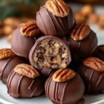Keywords: pecan pie balls, no bake desserts, holiday treats, bite-sized pecan pie, chocolate coated snacks, pecan recipe