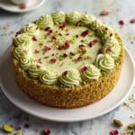 Keywords: Pistachio cake, cream cheese frosting, rosewater dessert, nutty cake, Middle Eastern cake, pistachio cream cheese cake