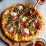 This Prosciutto and Honey Burrata Pizza combines creamy burrata cheese with salty prosciutto and a touch of sweet honey for a perfect balance of flavors. It’s a simple yet elegant homemade pizza that’s sure to impress your family and friends.