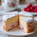 - Gently fold in raspberries to avoid crushing and changing the texture of the cake.